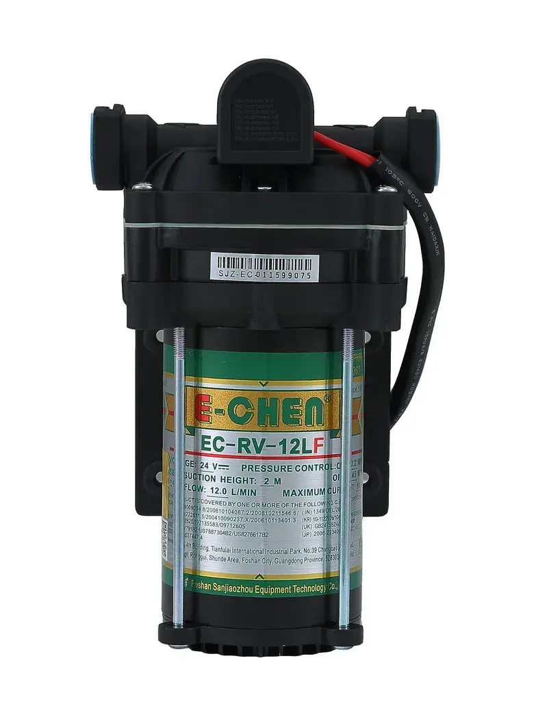 Насос EC-RV-12LF — це діафрагмовий насос, призначений для підвищення тиску води та її перекачування в системах зворотного осмосу, очищення води та водопостачання.
